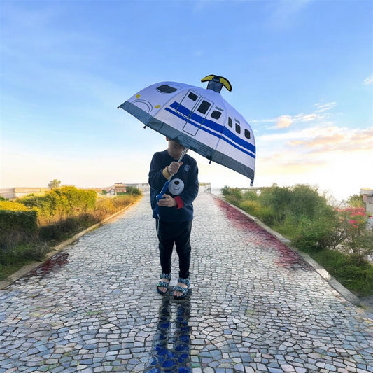 日本正版兒童立體發光發聲新幹線直升機雨傘直遮
